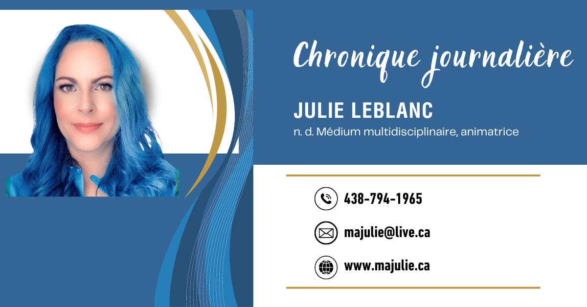 Évoluons avec l’âme des célébrités – Décembre Animée par Julie Leblanc, médium multidisciplinaire Diffusée chaque vendredi midi sur YouTube Décembre s’ouvre avec une série d’épisodes puissants, contrastés et hautement vibratoires. Dans Évoluons avec l’âme des [...]